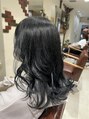 ほんのりブルーが見える人気のブルーブラックは、明るめのベースから作ることで重すぎない質感に。光の当たり方でグレージュっぽくも見えるので透明感もでます◎染める前の明るさによってはカラーまたはブリーチでベースを整えてからお色味を入れます。