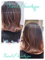 基本は、ワンレンボブ。しっかり毛量を調節し、隠れトップレイヤー。顔まわりのみレイヤー。可愛いのに大人っぽい。 20代に人気のスタイル。