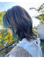 流行中のフェイスフレーミングにハイライトをさらに追加したオリジナルデザイン。シアーなミントグリーンのウルフはオンリーワンでかわいいです♪