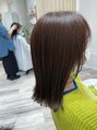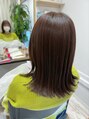 - マットブラウンでツヤ感抜群!顔周りのみのレイヤーと鎖骨までの切りっぱなし※当日メニューご相談◎