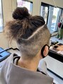 高めに刈り込んだモヒカンスタイルトップをまとめた時に見えるようにラインは太めに刈り込みました