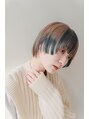 前髪のワンサイド、顔周りの毛先に裾カラーでブルーを使ったデザインカラー。全体をベージュに設定しているので馴染みも良い挑戦しやすいデザインカラー。