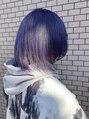 カラーはダブルカラー!ブリーチのあとに高発色なラベンダーカラーをオンカラーしました。ジェンダーレスなスタイルなので男女ともにオススメですよ♪紫系バイオレット系にしたい方はオススメです。ダブルカラー気になる方はお任せください。