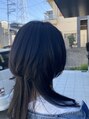 個性派ネオ・ウルフデザイン♪長さの違いをしっかり出して、上部分はボブベースでカットポコっと丸みをあえて残してデザイン☆カラーはブルーブラックでカラーリング◎