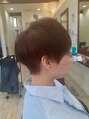 耳をスッキリ出したコンパクトなショートスタイル。頭の形が綺麗に見えるよう丸みを意識してカットしました。乾かすだけで決まるのでスタイリングしやすいヘアです!明るめベージュで軽やかさを出しました。