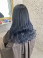 全力でブルーを発色させに行ってます。毛先はブリーチベースなので、グレーっぽく落ち根本も透け感ブラウンに落ち色落ち後もグラデーションっぽくなります