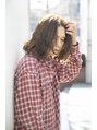 メンズロングヘア 大きめなウェーブが出るようパーマをかけてカラーはグリーン系ブラウンをベースにハイライトを入れました。