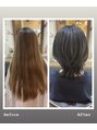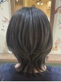 サイドはヘビーなマッシュ、バックはライトなウルフのハイブリッドなスタイル。カラーはアディクシー エメラルドをベースにグリーンを感じるダークカラー。