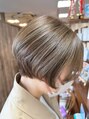 全体にハイライトをいれて、オリーブベージュをにかぶせました