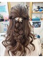 ヘアセット。ハーフアップスタイル。ふわふわ編み編みハーフアップ。