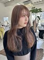 透明感のあるミルクティーベージュブリーチ後ブラウン、アッシュ、ラベンダーをミックスして作る淡いカラーです。