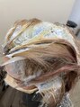 ブリーチカラーのBEFOREとブリーチのリタッチ塗布をしているところです。毛先が傷まないように丁寧に塗布しています。
