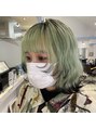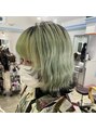 ブリーチ2回以上、ペールグリーン☆毛先にブラック、裾カラー☆