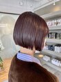スッキリ、ミニボブにピンクブラウンカラーで春デザインです。短めのスタイルは暗めのカラーで暖色を選ぶと柔らかく、重くなりすぎないイメージになるので、おすすめです。