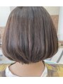 レイヤーボブで内巻きの仕上がりに。アッシュベージュカラーで透明感を。縮毛矯正ストレートでまとまりやすく。