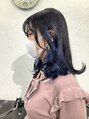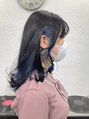 ブリーチ2回  インナーカラーライトブルー色抜けも良い色です。表面はブラックで染めています