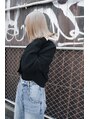 ケアブリーチを2~3回後、ブロンドになるカラーをオン!タンパク変性させないカラー剤のお陰で柔らかい仕上がり★一気にお洒落度UPですね。可愛い。