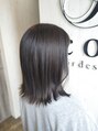 オリーブグレージュの外ハネミディアムです。程よいくすみ感と透明感が出るおすすめのカラーです♪