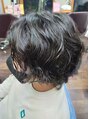 落ち着いた緩めのパーマ。髪色も暗めのモノトーン。