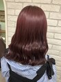 レッドピンク/ダブルカラー/透明感カラー/ブリーチなしカラー/ナチュラルスタイル/ハイトーン