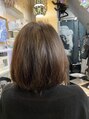 恥ずかしがり屋さんな方で小顔に見える様な前下がりスタイルがご希望です。髪が細く絡みやすくボリュームが出にくい髪質です。
