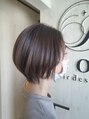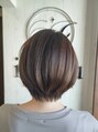 オリーブベージュでくすみ感と透明感を出した丸みショートです。