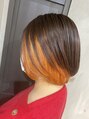 目立つこと間違いないオレンジのインナーカラーです☆ワンブリーチでも色は入りやすいですが、こちらのスタイルのような発色だと2回のブリーチがオススメです☆上のカラーも少し明るめのナチュラルブラウンに♪
