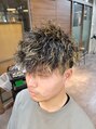 スパイラルパーマ/メッシュ、ハイライト/メンズショート