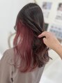 ピンクブラウンとインナーカラーをピンクレッドにしました☆インナーカラーはケアブリーチを使用して1度明るくした後、オンカラーは高品質カラーを使用してピンクレッドをしっかり入れました(^ ^)ちらっと見えるデザインカラーでとても人気のスタイルです♪