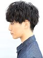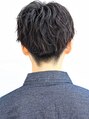 サイドはツーブロック、バックは刈り上げ、トップはショートレイヤーベースです。前髪は分けることも下ろすこともできる目上の長さです。緩めのパーマをかけクセ風のカールが出るようにしています。セット次第でどんな場面にも対応できるスタイルです。