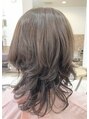 毛流れや動きの出やすいレイヤースタイル。ラフウェーブで柔らかい仕上がりに。ショコラベージュでツヤのある落ち着いた印象に。