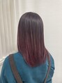 ピンクのグラデーション!中間から毛先にかけてブリーチ毛でしたので、根本付近はN.カラーの5レベルペオニー、中間から毛先が13レベルのペオニーで明るく仕上げました!この方のブリーチの回数は3回以上されてます!