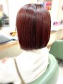 パツッと感がかわいい切りっぱなしボブと、ヴィーガンカラーの深みのあるレッドブラウンが上品な大人のオシャレ感を演出♪
