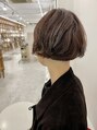 襟足をパツっと揃えたラインが特徴のショートボブ。明るめのオレンジカラーで可愛らしさと大人な雰囲気を掛け合わせたショート。前髪の短さもおすすめポイントです。