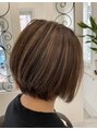 ボブにカットし全体の量感を軽くカット♪全体にカラー+ハイライト♪