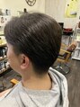 できるだけ広がりをおさえながら軽く仕上げました。アウトラインは綺麗にととのえて、スタイリングも清潔感ある感じで男らしく。