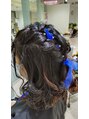 ボブスタイルのセットです。リボンを一緒に編み込み柔らかく巻いてパールをあしらって可愛らしいイベントスタイルにしました。
