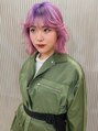 *ピンクラベンダー ケアブリーチ 伸ばしかけボブ 外ハネ