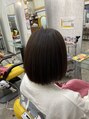 切りっぱなしボブandヘアカラーですヘアカラーを3段階の塗り分けでカラーします。3段階で塗り分ける理由は自宅で普段ヘアアイロンでセットされてる方は「毛先が発色悪くなるから」です。毛先はかなり明るい色を選択しても明るくなりにくい方がいたり。