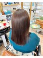 毛先のメンテナンスカット。ホイルレスな細めハイライトを2センチ間隔で全体的にオン。白髪もボヤける絶品ハイライト☆ベースはカーキブルー。高濃度水素、マグネット、ウルティアのトリプルケアで柔らかサラサラツヤツヤ♪