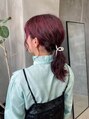 ピンクカラー 赤髪 暖色系 パーマ ミディアム ワイン