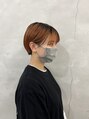 ダブルカラーでつくるアプリコットオレンジのマッシュショート。前髪は束感のあるシースルーで軽やかにし、全体はしっかりウエットにタイトにしています