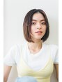 パツンと切り揃えた、潔いボブスタイル。さらには、毛先に柔らかさの出るようにカットしているため、まっすぐ、外ハネ、両方のスタイリングが楽に決まります。顔まわりの一部分だけカールをつけた、シンプルの中に遊び心をプラスしたスタイルです。