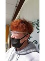 白髪が大分増えてきたので、白髪染めで隠すよりも明るくして楽しみたいとのご注文!!くるくるパーマで上は長めなのに対し、周りはスッキリとツーブロックで刈り上げてます。スタイリングしやすく、時間短縮にも◎