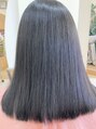 髪の状態に合わせて薬剤選定、根元から毛先まで自然なストレートに。温熱ケアトリートメントを重ねてなめらかな手触りに。