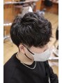 フロント部分にしっかりカールを出したパーマスタイルです。重ためのスタイルですが、サイドとバックは短めにしているのでこれからの温かい季節にもピッタリです!