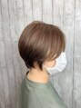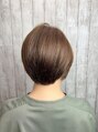 ●長めの前髪 ●つるんとした表面のまとまり ●毛先のシュッとしたこなれ感 キマッているのに、リラックスした雰囲気が楽しめる抜け感ショート♪【オリーブベージュ】のやわらかい雰囲気が相性◎