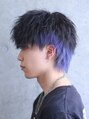 インナーに紫色のハイライトが入った個性派マッシュウルフ!見栄えが強く目立つこと間違いなし!