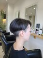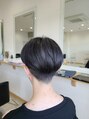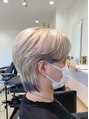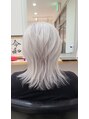 ダークグレーに表面に細いハイライトを入れ、立体感のあるカラーを。予約はカットカラーとブリーチを選択してください。