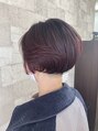 濃い目なレッドブラウンのショートスタイルです。襟足とサイドはツーブロックになってて、遊び心があります!カラーもレッドブラウンです!おしゃれ感あります!
